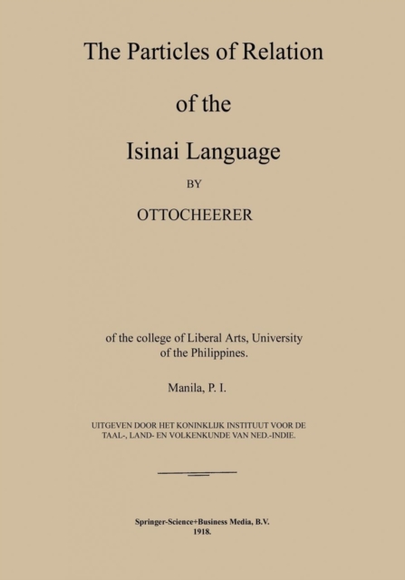 The particles of relation of the Isinai language (1918). This book, The particles of relation of the Isinai language, by Otto Scheerer, Koninklijk Instituut voor Taal-, is a replication of a book originally published before 1918. It has been restored by human beings, page by page, so that you may enjoy it in a form as close to the original as possible.