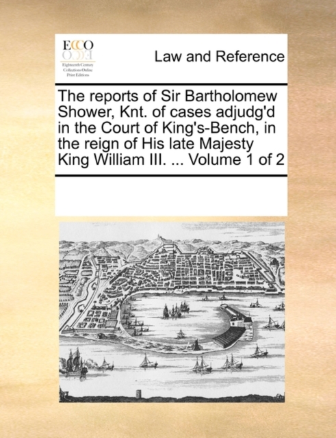 Boken The Reports of Sir Bartholomew Shower, Knt. of Cases Adjudg'd in the Court of King's-Bench, in the Reign of His Late Majesty King William III. ... Volume 1 of 2 finnes i følgende kategorier: