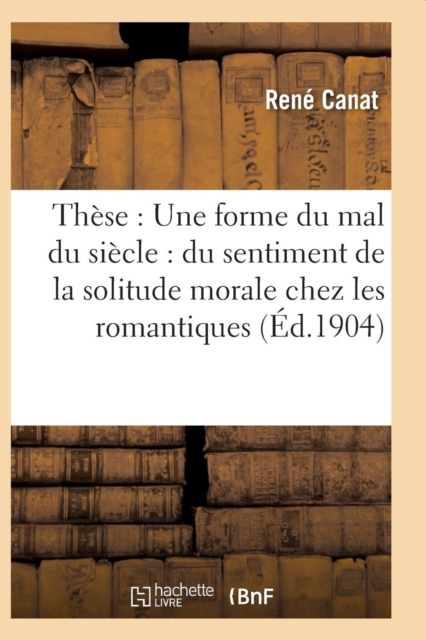 Une forme du mal du siècle: du sentiment de la solitude morale chez les romantiques et les parnassiens: thèse présentée à la Faculté des lettres de Paris / par René Canat, ...Date de l'édition originale: 1904Le présent ouvrage s'inscrit dans une politique de conservation patrimoniale des ouvrages de la littérature Française mise en place avec la BNF.HACHETTE LIVRE et la BNF proposent ainsi un catalogue de titres indisponibles, la BNF ayant numérisé ces oeuvres et HACHETTE LIVRE les imprimant à la demande.Certains de ces ouvrages reflètent des courants de pensée caractéristiques de leur époque, mais qui seraient aujourd'hui jugés condamnables.Ils n'en appartiennent pas moins à l'histoire des idées en France et sont susceptibles de présenter un intérêt scientifique ou historique.Le sens de notre démarche éditoriale consiste ainsi à permettre l'accès à ces oeuvres sans pour autant que nous en cautionnions en aucune façon le contenu.Pour plus d'informations, rendez-vous sur www.hachettebnf.fr