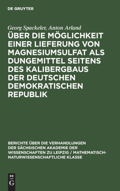 Boken UEber die Moeglichkeit einer Lieferung von Magnesiumsulfat als Dungemittel seitens des Kalibergbaus der Deutschen Demokratischen Republik finnes i følgende kategorier: