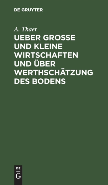 Ueber grosse und kleine Wirtschaften und uber Werthschatzung des Bodens