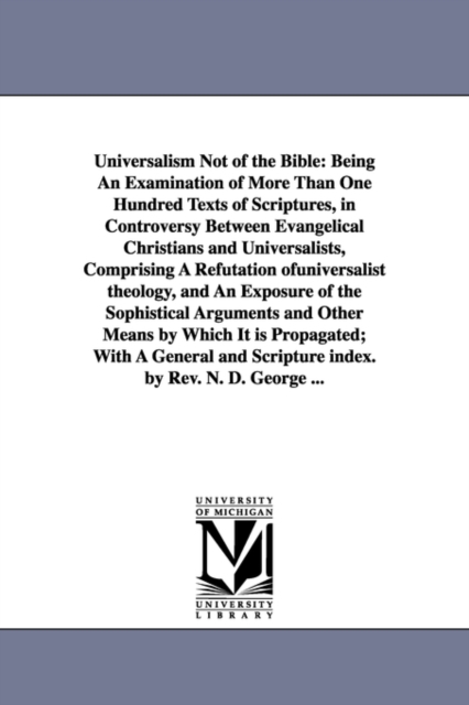 - Being An Examination of More Than One Hundred Texts of Scriptures, in Controversy Between Evangelical Christians and Universalists, Comprising A Refutation ofuniversalist theology, and An Exposure of the Sophistical Arguments and Other Means by Which It i