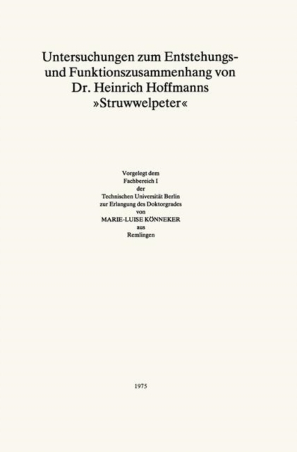 Boken Untersuchungen zum Entstehungs- und Funktionszusammenhang von Dr. Heinrich Hoffmanns "Struwwelpeter" finnes i følgende kategorier: