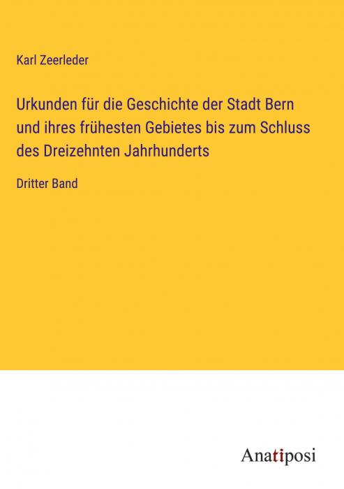 Om Urkunden für die Geschichte der Stadt Bern und ihres frühesten Gebietes bis zum Schluss des Dreizehnten Jahrhunderts