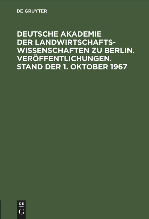 Veröffentlichungen. Deutsche Akademie der Landwirtschaftswissenschaften zu Berlin. Stand der 1. Oktober 1967