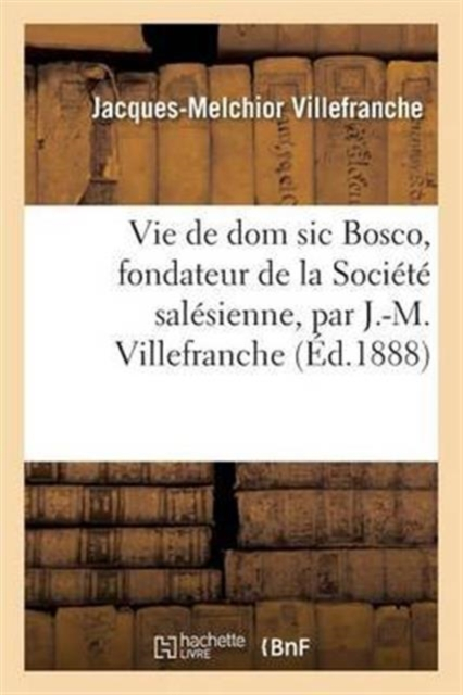 Vie de dom ["sic"] Bosco, fondateur de la Société salésienne, par J.-M. VillefrancheDate de l'édition originale: 1888Le présent ouvrage s'inscrit dans une politique de conservation patrimoniale des ouvrages de la littérature Française mise en place avec la BNF.HACHETTE LIVRE et la BNF proposent ainsi un catalogue de titres indisponibles, la BNF ayant numérisé ces oeuvres et HACHETTE LIVRE les imprimant à la demande.Certains de ces ouvrages reflètent des courants de pensée caractéristiques de leur époque, mais qui seraient aujourd'hui jugés condamnables.Ils n'en appartiennent pas moins à l'histoire des idées en France et sont susceptibles de présenter un intérêt scientifique ou historique.Le sens de notre démarche éditoriale consiste ainsi à permettre l'accès à ces oeuvres sans pour autant que nous en cautionnions en aucune façon le contenu.Pour plus d'informations, rendez-vous sur www.hachettebnf.fr