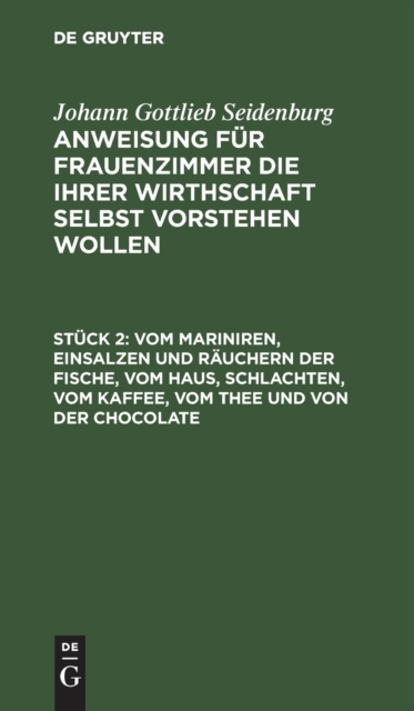 Boken Vom Mariniren, Einsalzen und Rauchern der Fische, vom Haus, schlachten, vom Kaffee, vom Thee und von der Chocolate finnes i følgende kategorier: