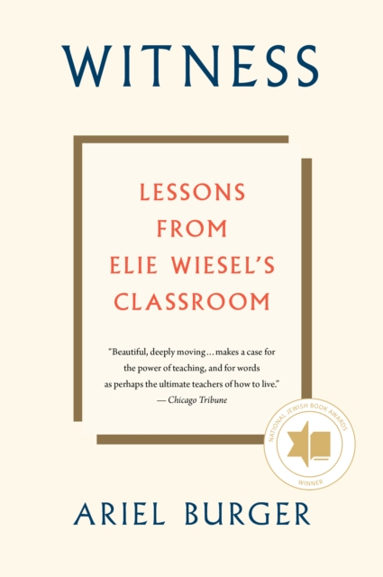 In the vein of Tuesdays with Morrie, a devoted student and friend of Holocaust survivor and Nobel Peace Prize recipient Elie Wiesel invites readers to witness one of the world's greatest thinkers in his own classroom in this instructive and deeply moving read, a National Jewish Book Award-winner. The world remembers Elie Wiesel (1928-2016) as a Nobel laureate, activist, and author of more than forty books, including Oprah's Book Club selection Night. Ariel Burger met Wiesel when he was a teenage student, eager to learn Wiesel's life lessons. Witness chronicles the intimate conversations between these two men as Burger sought Wiesel's counsel on matters of intellect, faith, and survival while navigating his own personal journey from boyhood to manhood, from student and assistant to rabbi and teacher. In this thought-provoking account, Burger brings the spirit of Wiesel's classroom to life, where the art of storytelling and the act of listening conspire to make witnesses of us all-as it does for readers of this inspiring book as well.