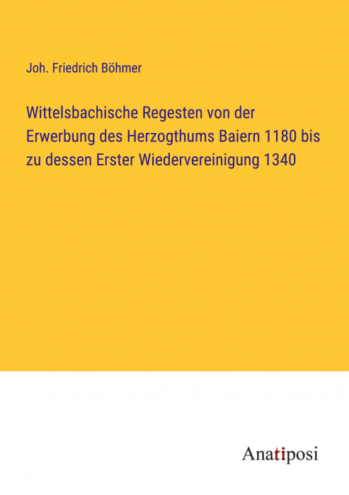 Wittelsbachische Regesten von der Erwerbung des Herzogthums Baiern 1180 bis zu dessen Erster Wiedervereinigung 1340